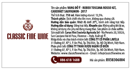 100% giống nho Cabernet Sauvignon