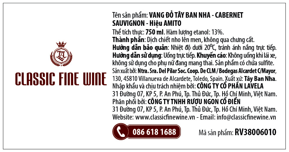 Vang đỏ Tây Ban Nha - AMITO CABERNET SAUVIGNON