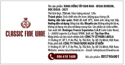 Rosé Bordon là loại vang hồng không ngọt được làm từ 3 loại nho Viura, Tempranillo và Garnacha được trồng từ các vườn nho khu vực Oriental Rioja. Rượu được ủ theo phương pháp truyền thống tạo ra loại rượu vang có màu hồng vỏ hành và ánh màu cam.